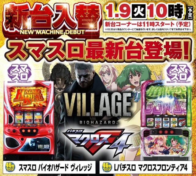【1月9日】<新台入替>10時オープン!新台は11時~♥