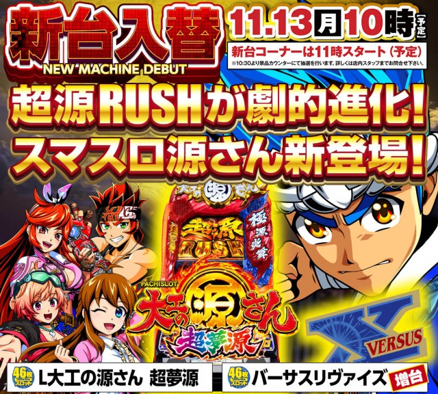 【11月7日】新台入替2日目!【新台】も全館10時オープン!