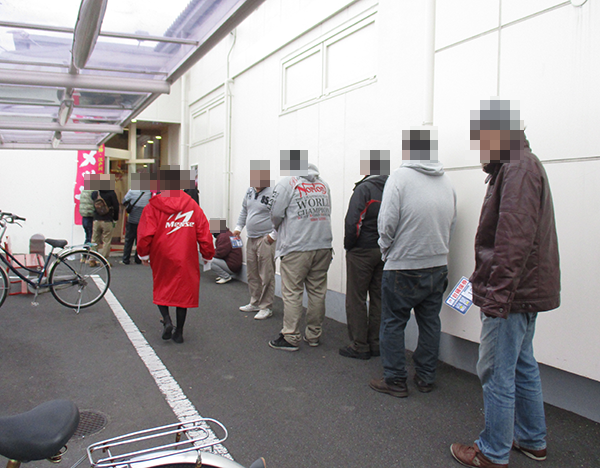 朝イチは9時30分から入場抽選がおこなわれており、多数のプレイヤーが参加。開店時間に合わせて来店するプレイヤーも多くみられた。