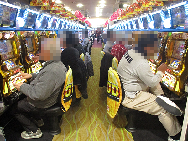 14時を過ぎた頃のパチスロでは、朝から注目されていた「ミリオンゴッド-神々の凱旋-」にて、機種の性能を引き出しているようなプレイヤーを目撃。遊技をしているプレイヤーの表情をみるかぎりでは、満足度も高かったように思う。
