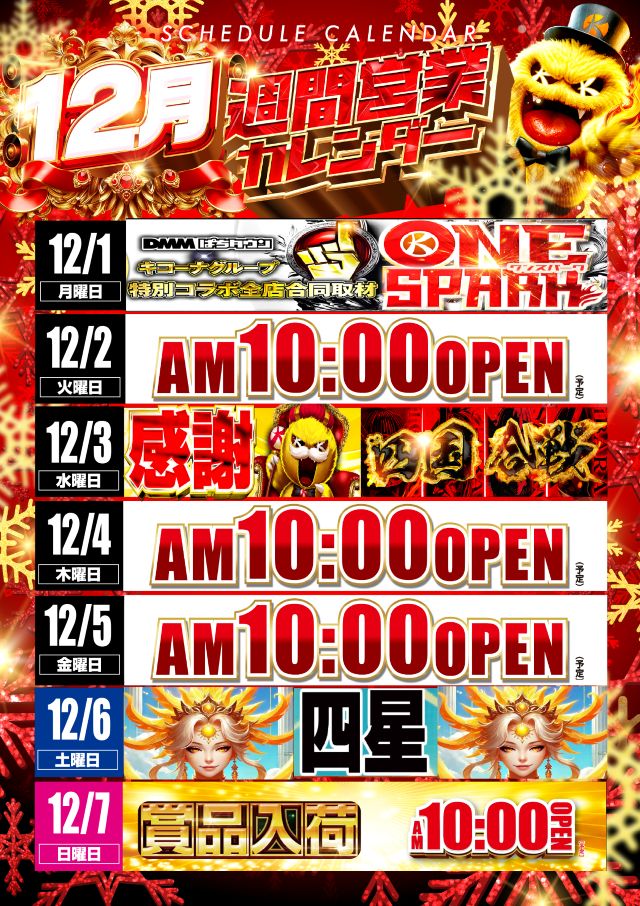 1位 11月25日(火) 2位 11月24日(月) 3位 11月23日(日)