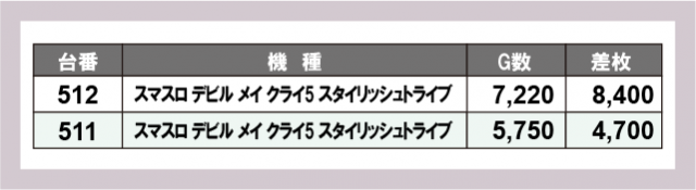 ※台番号順に掲載しています
