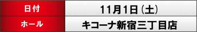 11月1日(土) キコーナ新宿三丁目店にて、DMMぱちタウンの「ONE SPARK取材」を実施。