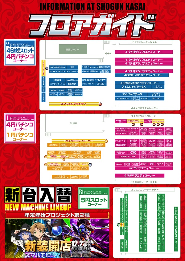 本日12月23日新台入替午前10時開店スマパチコーナー拡大!