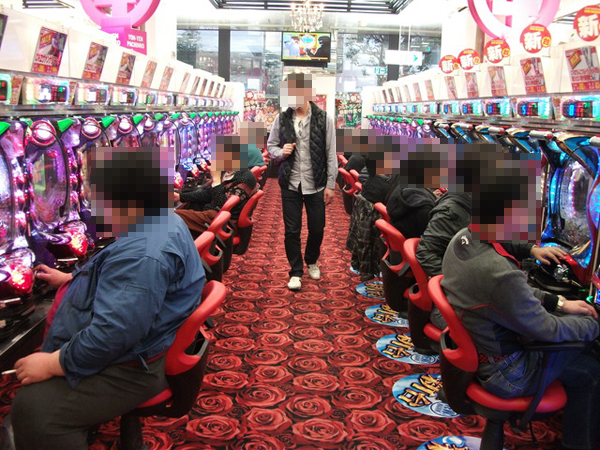 1円パチンコのシマでは、遊技台を吟味しているプレイヤーを確認。