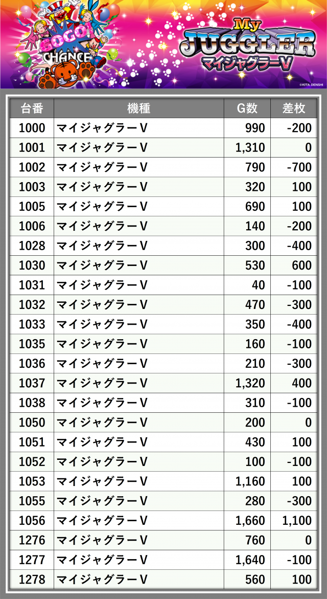 ※台番順に掲載しています
