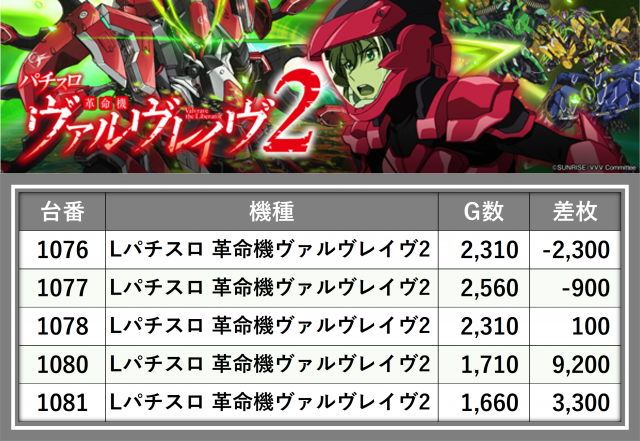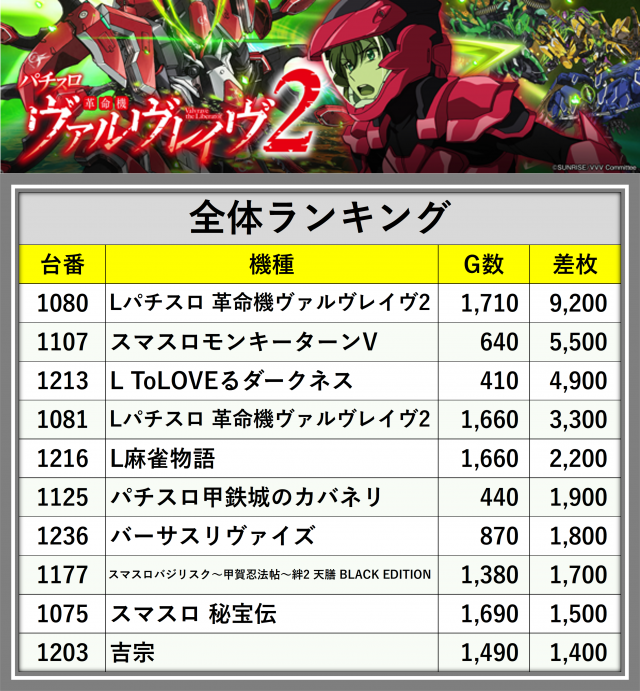 ※差枚数順に掲載しています