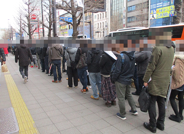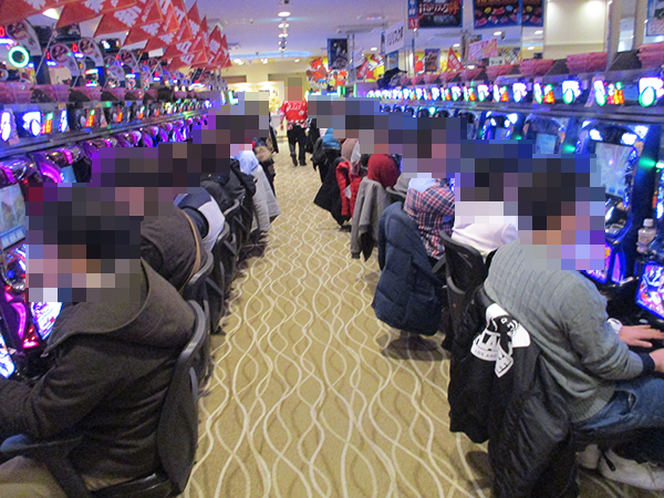 9時からおこなわれたパチスロの入場抽選には、約180名のプレイヤーが参加。