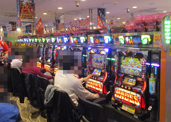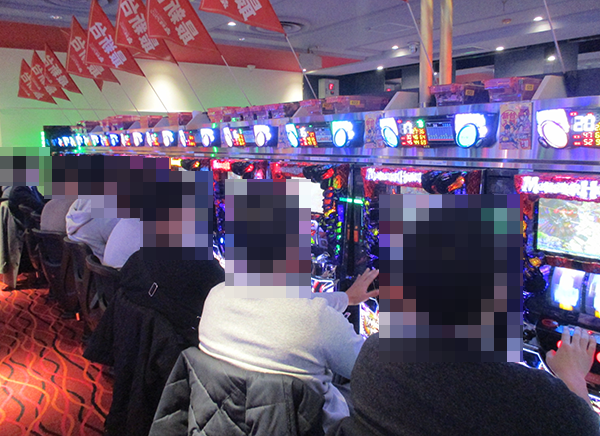 パチスロのなかで、とくににぎわっていたのが「パチスロ モンスターハンター 月下雷鳴」と「アナザーゴッドハーデス」。ポテンシャルを最大限まで引き出せているといったプレイヤーもあちこちにみられ、各シマに華やかな雰囲気が感じられた。