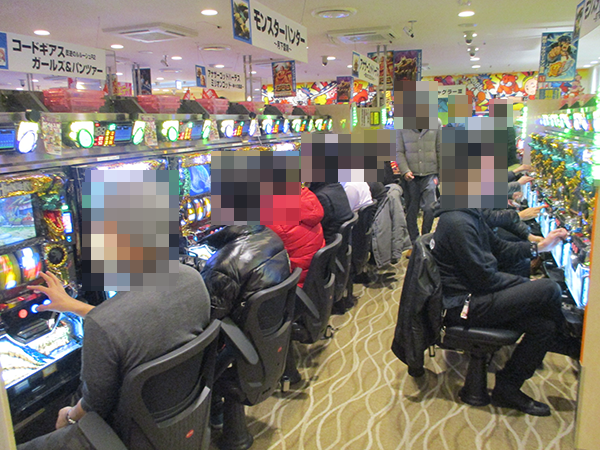 朝イチはパチスロに向かうプレイヤーが多数。