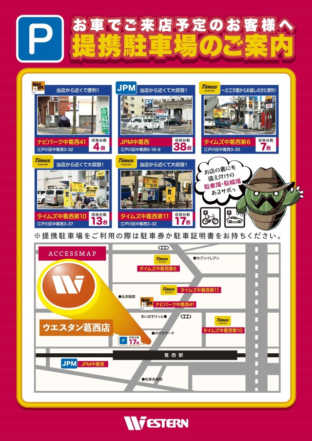 あり(16台) 提携駐車場全79台ご用意ございます!ご来店時、景品カウンターに駐車証明書をお持ちくださいませ。 |
