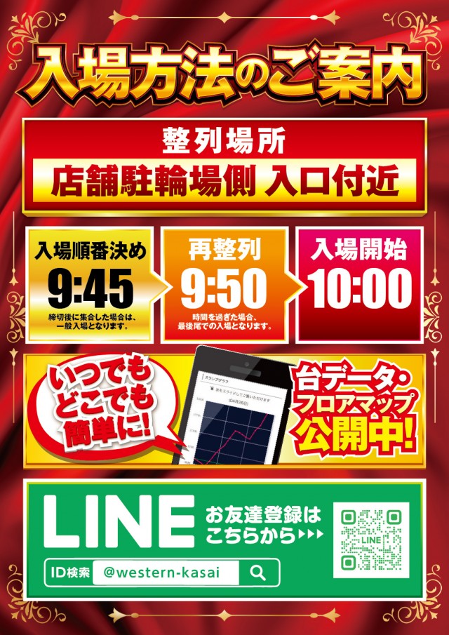 9:20までに店舗駐輪場にお越し頂いた方を対象に順番決めを行います。 |