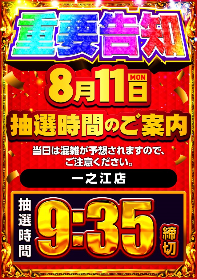 9:45正面入口にて抽選!会員カードは不要です!! |