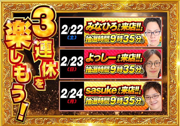 🔥2月23日よっしーさん来店!三連休を楽しもう✨🔥