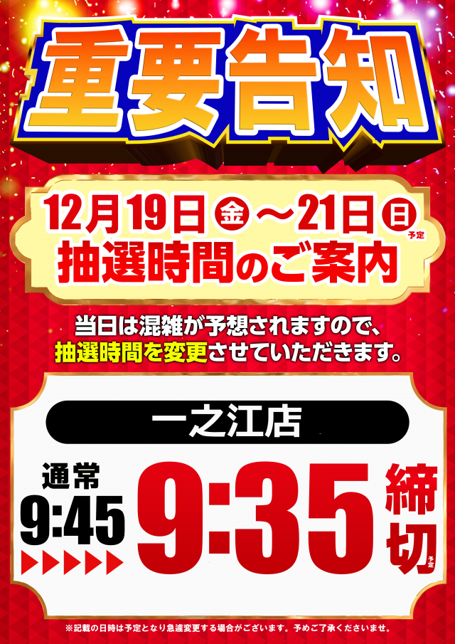 9:45正面入口にて抽選!会員カードは不要です!! |