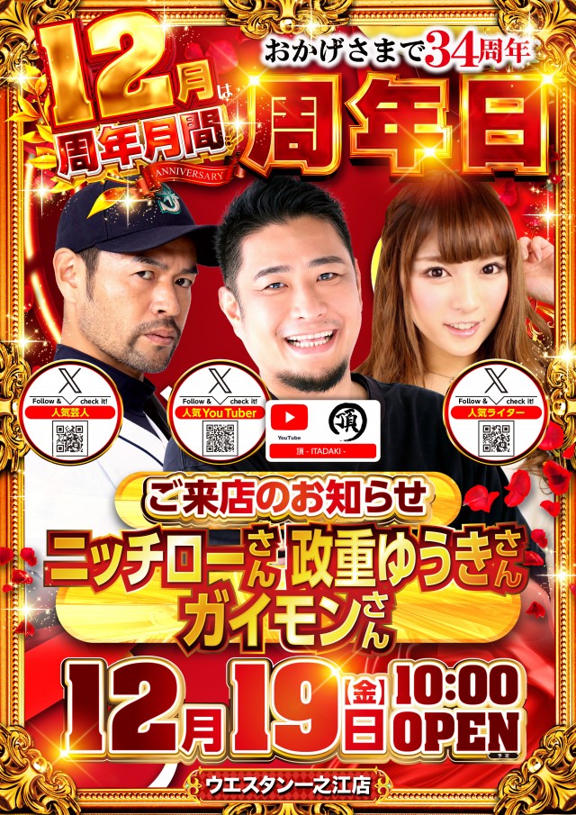 【重要】いよいよ明日12.19🌈周年日🌈トリプル演者来店
