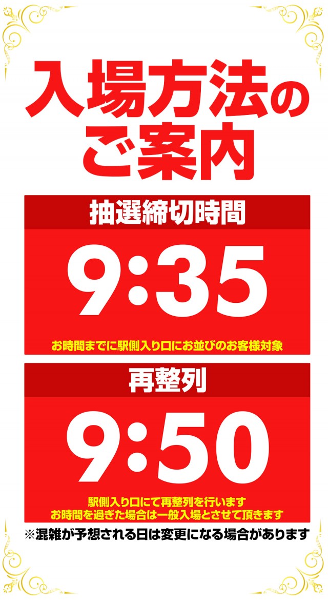 9:45正面入口にて抽選!会員カードは不要です!! |