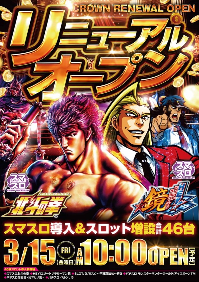 スマスロ北斗の拳&HEY鏡導入!!!リニューアルオープン☆
