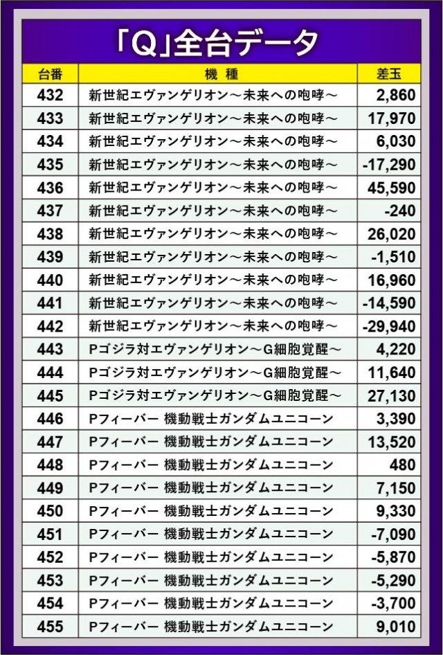 『新世紀エヴァンゲリオン〜未来への咆哮〜』はその高いポテンシャルを発揮し、436番台+45,590玉という突出した記録を打ち立てた。他にも『P真・一騎当千』382番台+28,560玉といった記録も見られ、各所で万発OVERが発生していたのがポイントだろう。対象となった島は約半数がプラス差玉を記録し、これには遊技していたファンも有意義な時間を過ごしていたに違いない。