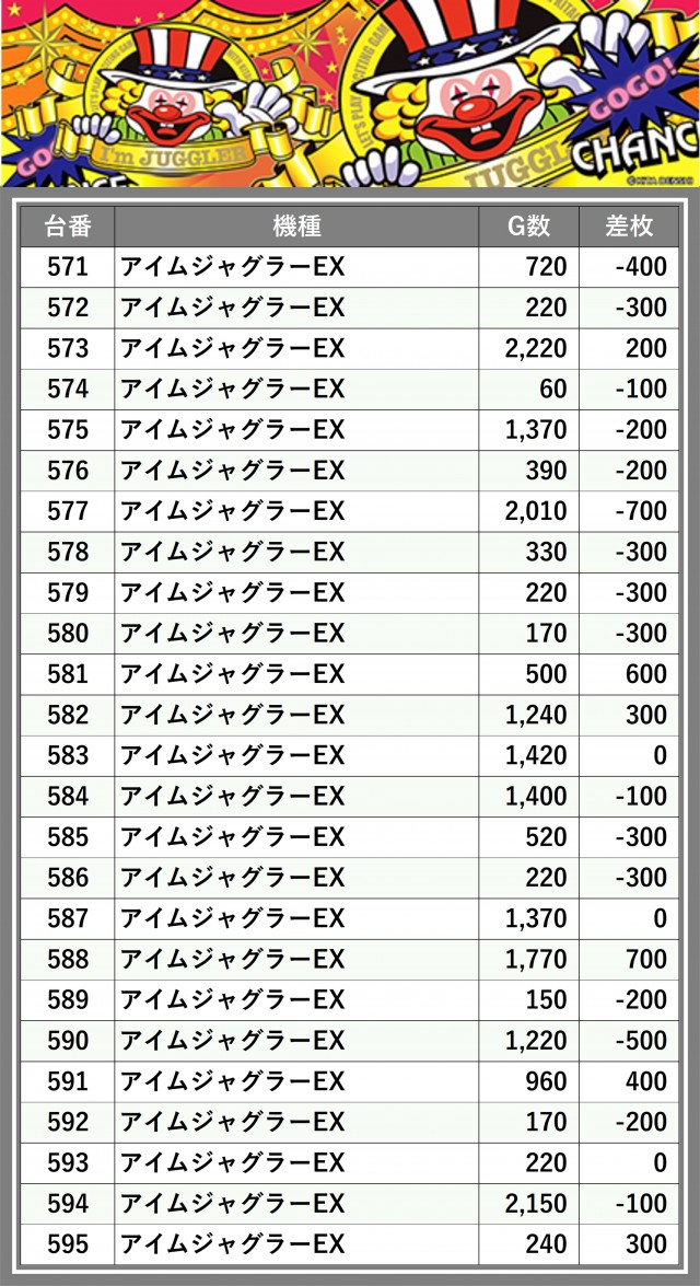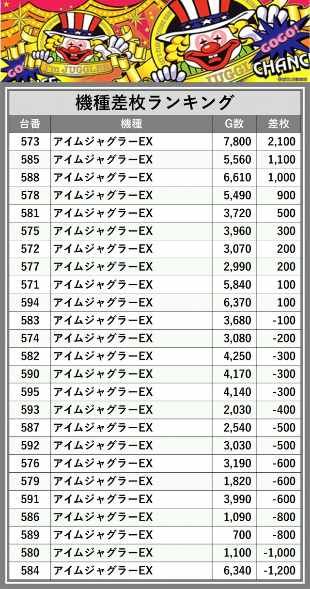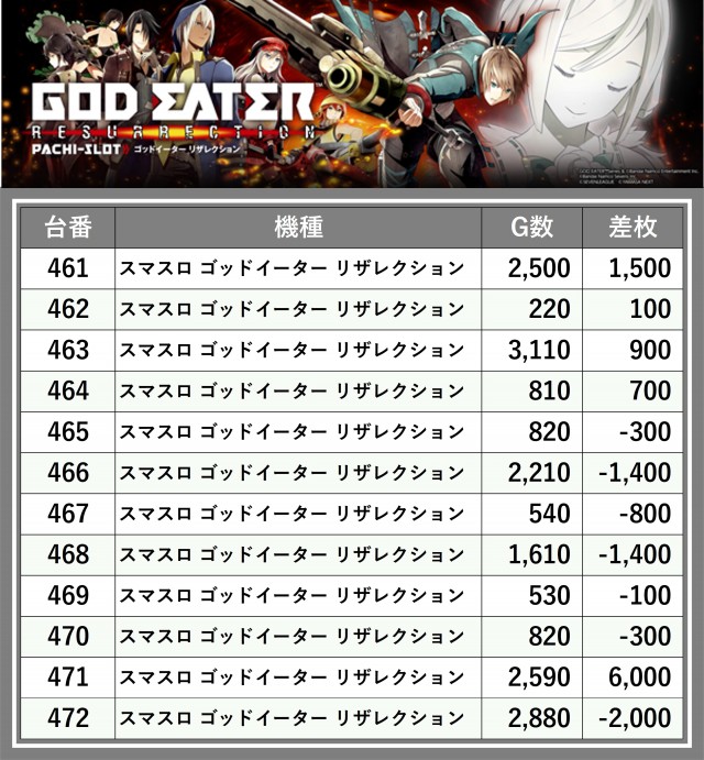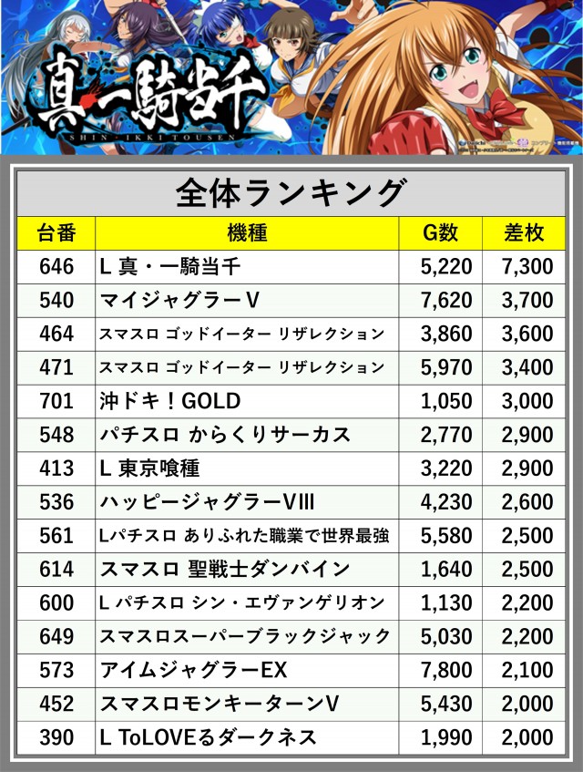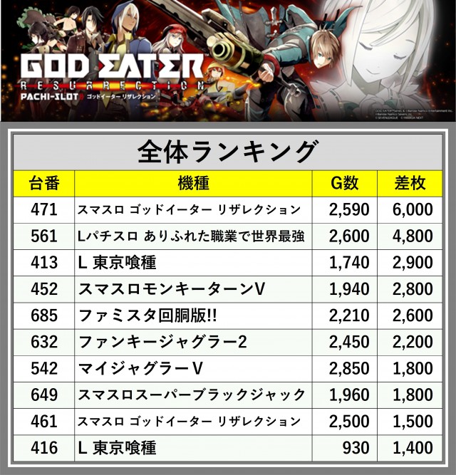 厳選された取材対象機種をはじめ、その他スロット全体から好記録が飛び出した!プレイヤーが楽しんだ1日を下記データにて振り返ってみて欲しい。