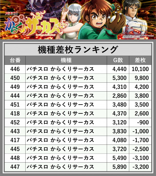 ※差枚数順に掲載しています