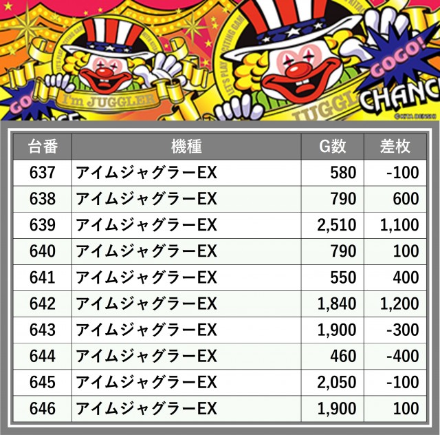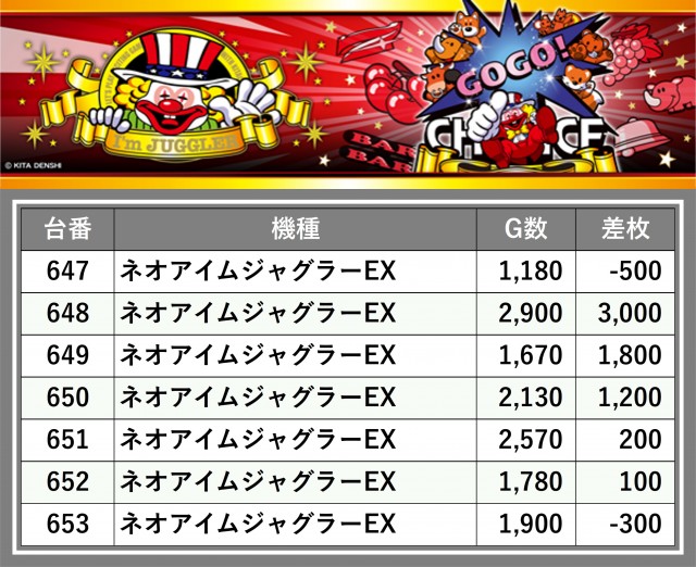 厳選された取材対象機種をはじめ、その他スロット全体から好記録が飛び出した!プレイヤーが楽しんだ1日を下記データにて振り返ってみて欲しい。