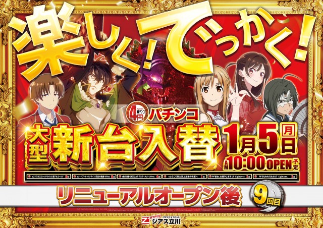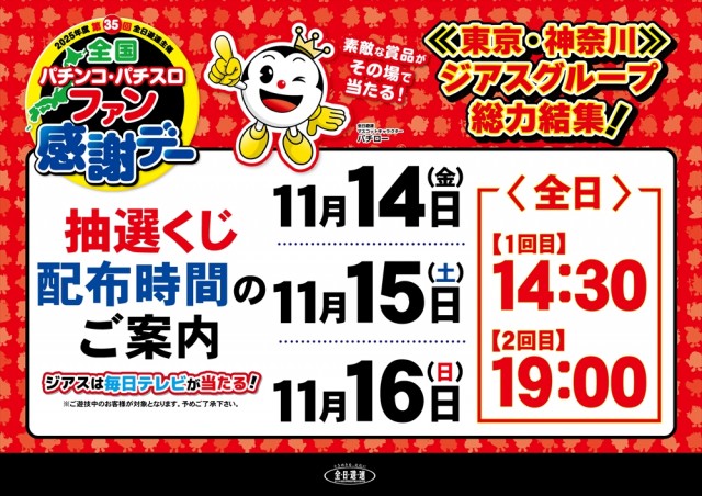 9:30までに並ばれたお客様対象となります。※パチンコ・スロットそれぞれ抽選のご参加を締め切らせて頂く場合がございます。 |