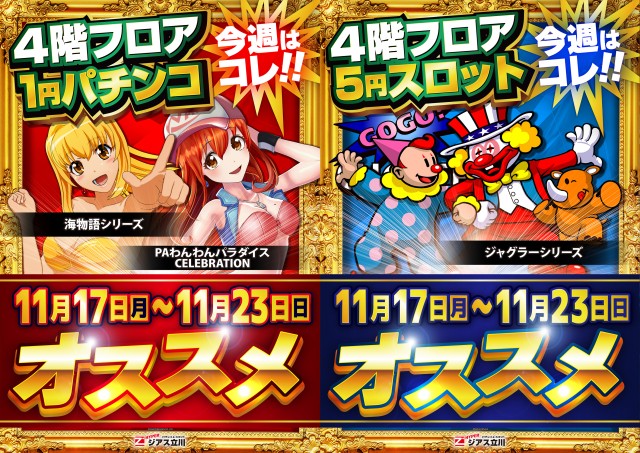 ☆本日ジアスの新台入替!最新台に加えて人気機種の増台も☆