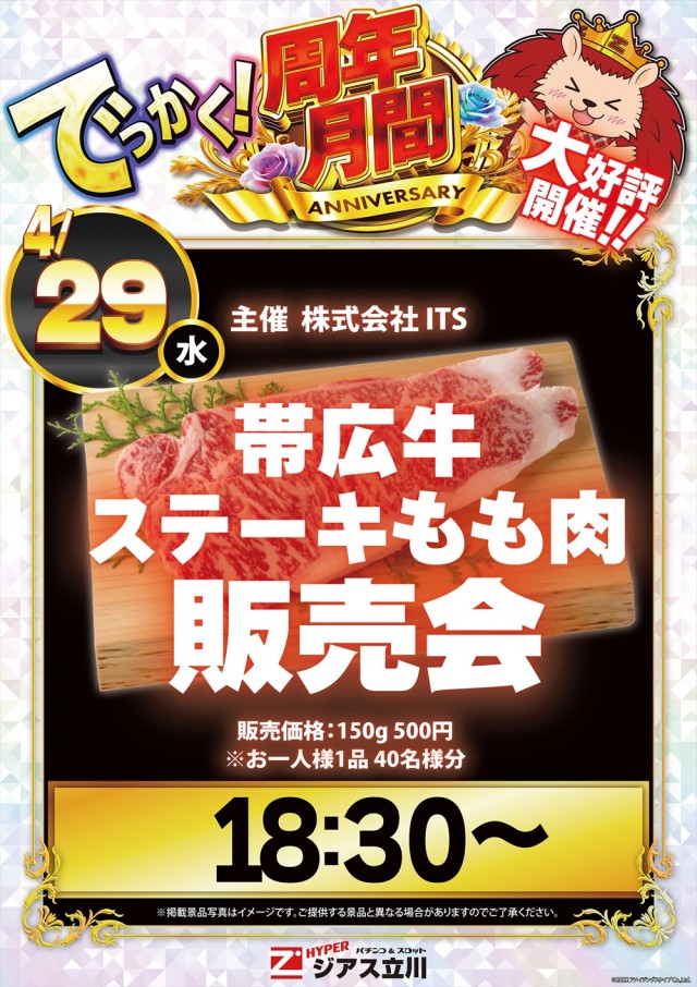 ★4/29(水)4月はジアスの周年月間★肉景品入荷!!