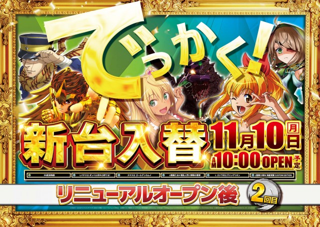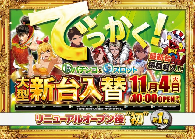 ☆リニューアルオープン10日目☆「でっかく」大型新台入替!!