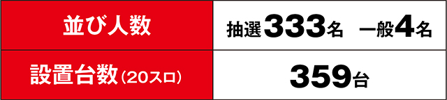 開店前に300人以上が並んだこの日、その並び人数に比例するかのように優秀台もかなりの数が投下された模様。並びが9つ、全台系が1つ、ニブイチが1つ、列が1つと、今回は仕掛けのバリエーションも増え、大いに盛り上がったのは当然だった。またいつも通りに単品でも優秀台が数多く存在。なお今回は18,000枚オーバー記録が2台も生まれるという信じられないミラクルが降臨!