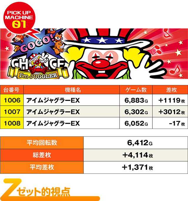 ややゲーム数不足な台もありつつ、しっかり3台並んでプラスとなっていた『ファンキージャグラー2』。やはりAタイプは優秀台がしっかり反応する。