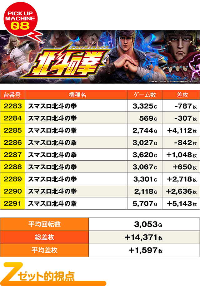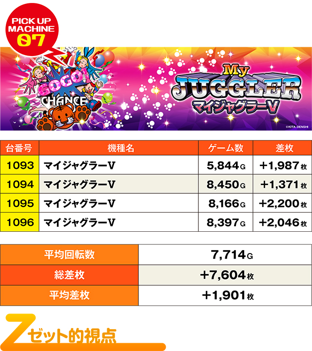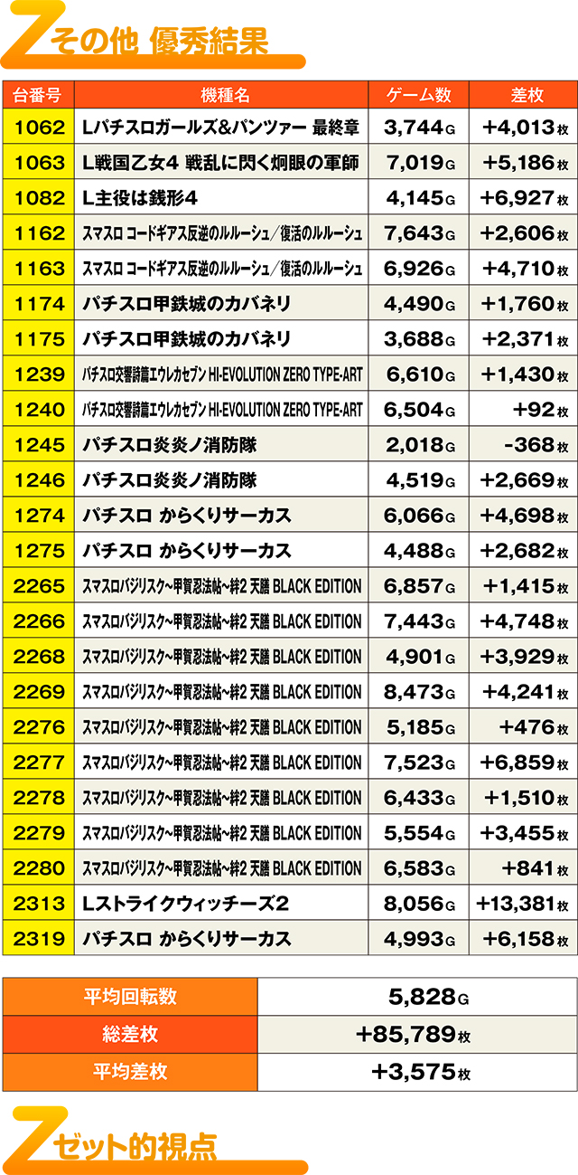 前回の「REAL取材Z」からわずか2日。にも関わらず、これだけの優秀台を使ってのけるあたりはさすがの一言。今回も並び・全台系・列など、様々な仕掛けで腕自慢のスロッターたちを楽しませてくれた。基本は並びを探し出すのがセオリーだが、単品でも十分ツモれるだけに、多彩な立ち回りが有効である。