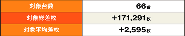 先ほどの列とは別に、今度は3台並びっぽい箇所を発見。なんと1台が16,000枚超え、その隣が5,800枚超えと、とんでもない結果を生み出していた。