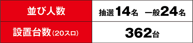 今回の対象台数は計61台。相変わらずとんでもない台数だが、平均差枚がこれまた凄い。なんと+2,623枚という高い数値をマークしていたのだ。それもこれも、並び・全台系・ニブイチ・単品という数々の仕掛けが効果的に機能していたからだろう。連日の優秀台使用はアッパレ!