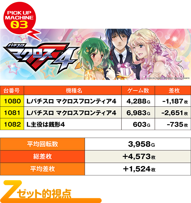 3台横並びでマイナスで終わってしまった『Lパチスロ マクロスフロンティア4』。しかしこの中には優秀台挙動を見せていた台もあったため、並び疑惑も…。