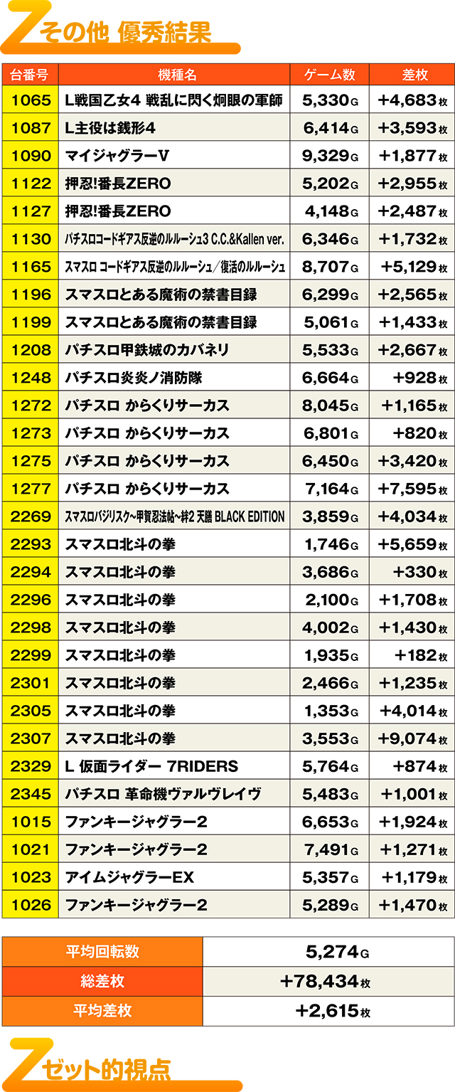 総ゲーム数がそのまま結果に反映したのだろう。3台ともに振るわない結果となってしまったものの、がっつり打ち込めばまた違った結果になっていたのかもしれない。