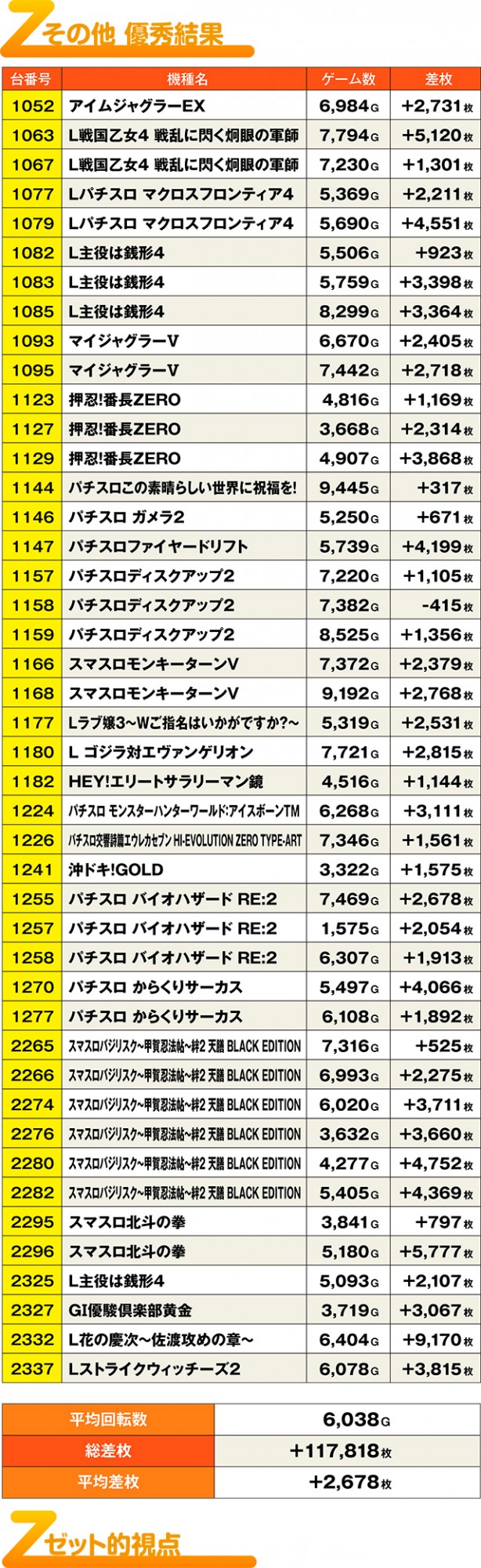 こちらの3台は、1台だけマイナスとなってしまったものの、その平均値は+1,058枚とまずまず。マイナスの1034番台は総ゲーム数不足によるマイナスだろう。
