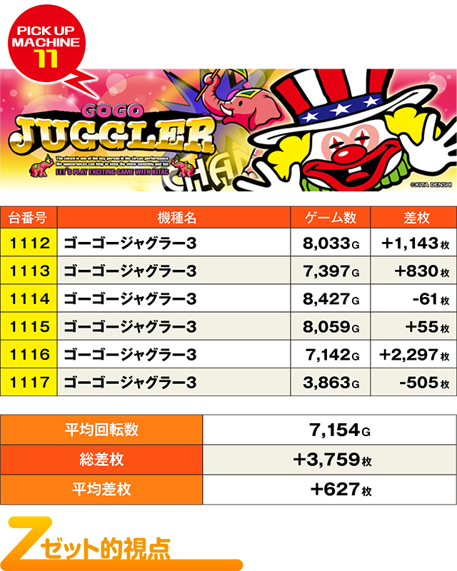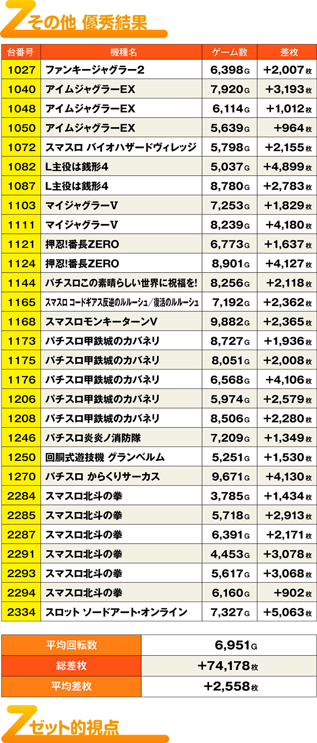 3,000枚超えに7,000枚超えと、優秀台が並んでいたとしか思えないこの3台。平均+3,837枚ってエグすぎやしませんか?