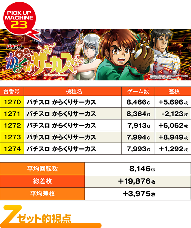 10台設置の『パチスロ からくりサーカス』から5,000枚超え記録が3台も…!察するに、ニブイチ&5台並びだった…?