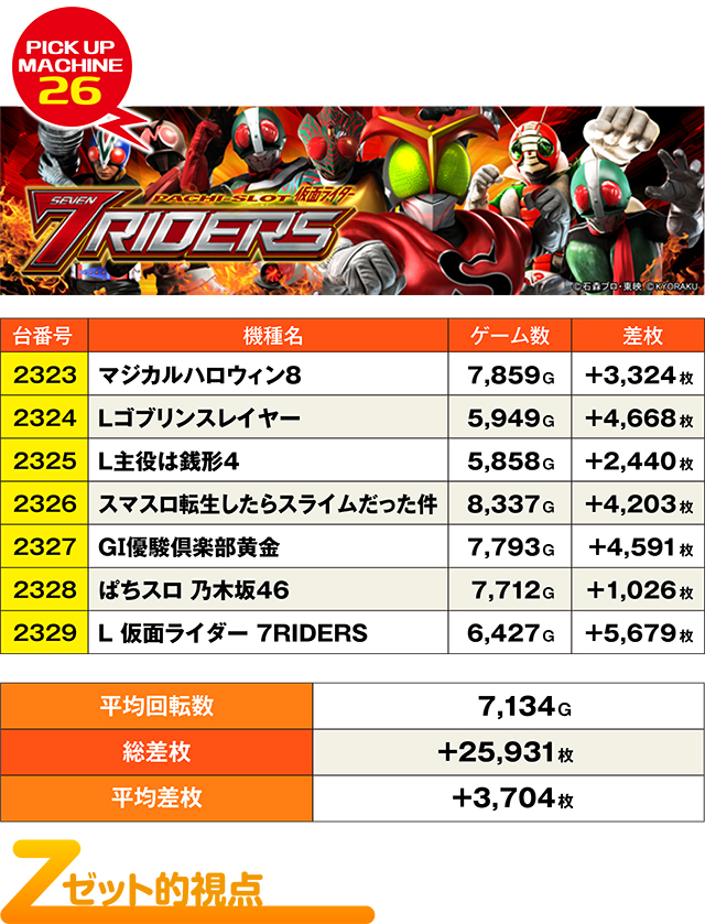 バラエティーコーナーにも優秀台並びと思しき7台が…!7台並んでプラっている上、平均+3,704枚って、もはや論ずる必要すらないかと。