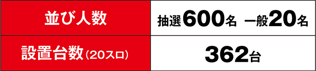 この日は周年日ということで、朝からなんと600人以上が大行列を作っていた。さすがにこれだけ期待されてショボい結果を残せるわけがない。そんな思いを体現するかのように、パチスロコーナーには優秀台並び・全台系・ニブイチ・単品などのいつもの仕掛けが登場。いつもと違うのはその数。明らかに周年仕様のパチスロコーナーが盛大に誕生日を祝ってくれたようだ。