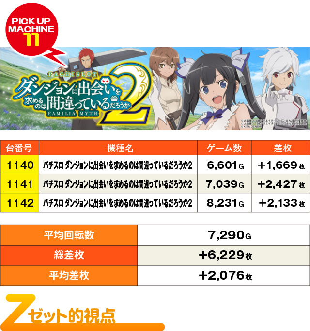 3台設置の『パチスロ ダンジョンに出会いを求めるのは間違っているだろうか2』は3台ともが+1,500枚オーバーのプラス!わかりやすい全台系…!