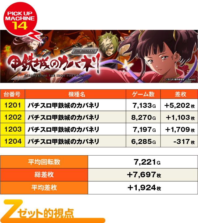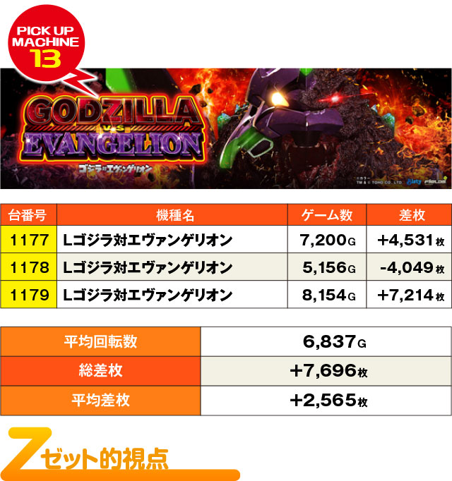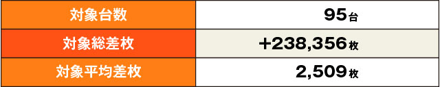こちらの3台も2台並びで+4,300枚オーバーを達成。先ほどの3台と同様、優秀台の3台並びと見て問題なさそうだ。