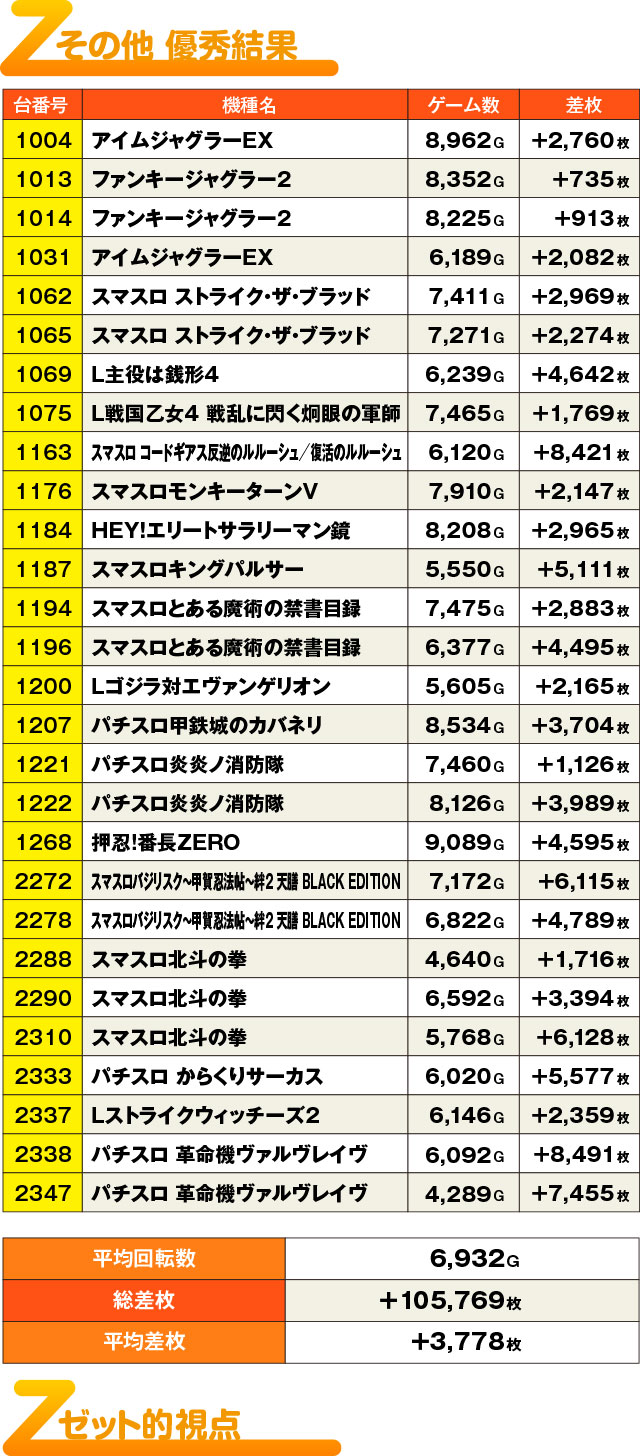 3台並んで文句なしのプラス差枚。しかも真ん中の台は+4,000枚オーバーという『ジャグ』性能を超えた結果に。こんなにわかりやすいゾーンもないかと。