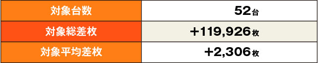 6台並んで5台がプラス。平均差枚こそ+1,000枚を切っているが、この安定したプラスっぷりは優秀台並びだったように思う。それも優秀台の6台並び!