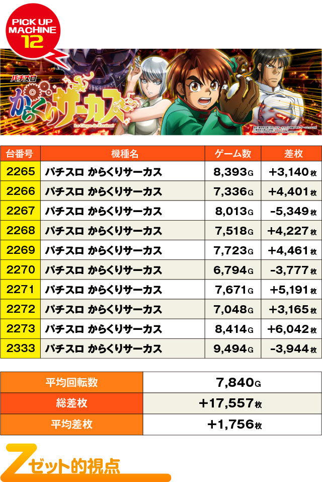 まさか10台設置の『パチスロ からくりサーカス』が全台系だった…などというミラクルが…?真偽のほどは定かではないが、全台系と言われても遜色のない結果!