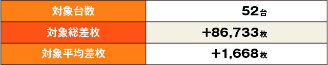こちらの6台も優秀台並びを疑わせるに十分な挙動を見せていた。残念ながら大きなプラス差枚はなかったが、優秀台の6台並びを平気でやってのけるお店なので、その可能性は高い。