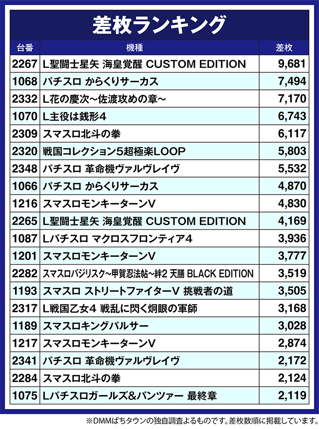 ほかにも、「L主役は銭形4」や「スマスロ北斗の拳」などに5,000ptを超えた台があった。