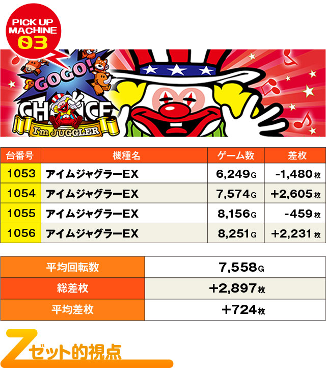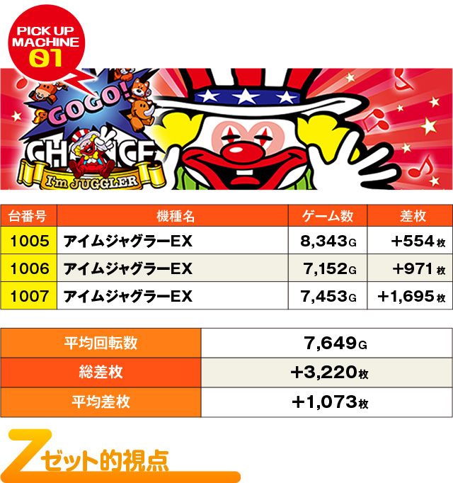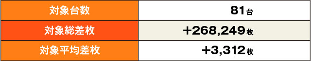3台が並んで+1,000枚オーバー。普段ならよく見る状況だが、この日はREAL取材Zの当日。ならば優秀台の3台並びと考えるべきか。差枚結果としてはもうひと押しほしかったところ。